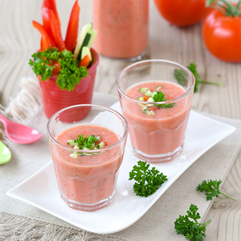 - Servir a sopa muito fria com alguns cubinhos de legumes.