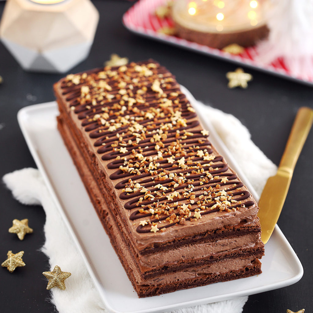 - Alterner les couches de génoises et de mousse en terminant par la mousse.