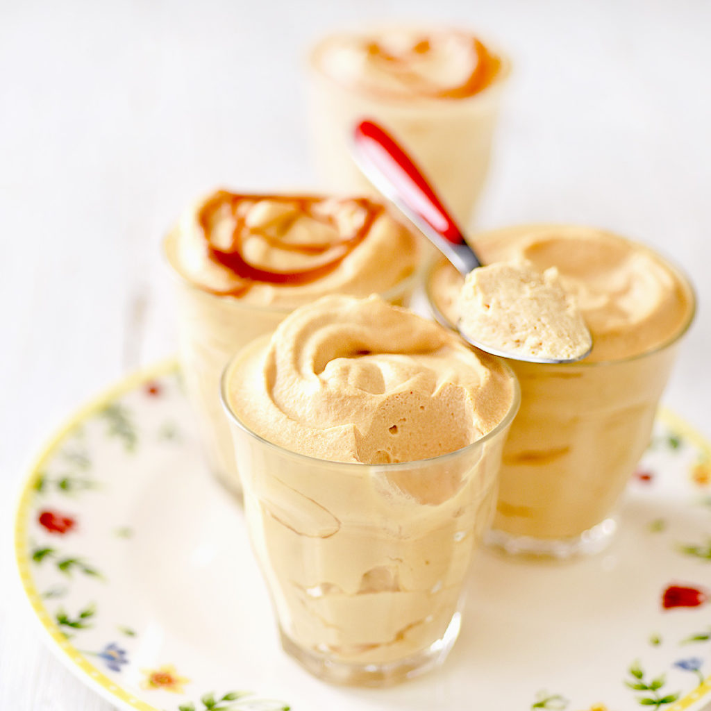 Pour des mousses encore plus gourmandes, ajoutez un filet de caramel beurre salé juste avant de les déguster.