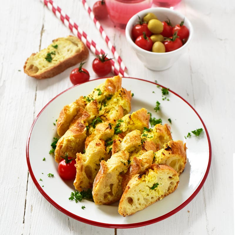 - Couper la baguette en tranches et servir.