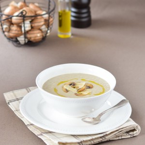 - Add the mushrooms, then the flour. Mix well. Pour in the stock, bring to the boil and cook for 10 minutes.